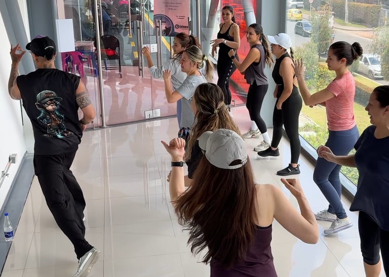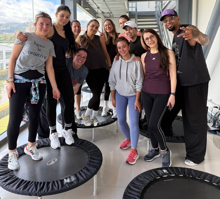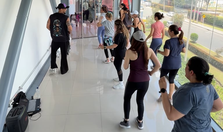 Las clases son dinámicas, guiadas por instructores expertos, combinando cardio, tonificación y coordinación en un ambiente energizante.